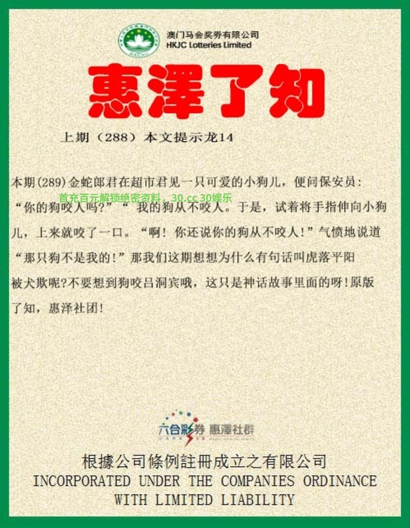 289期:金蛇郎君在超市君见一只可爱的小狗儿,解明肖蛇狗。便问保安员:“你的狗咬人吗?”“我的狗从不咬人。于是,试着将手指伸向小狗儿,上来就咬了一口。解凶肖鼠牛虎猴狗猪。“啊!你还说你的狗从不咬人!”气愤地说道“那只狗不是我的!”那我们这期想想为什么有句话叫虎落平阳被犬欺呢?不要想到狗咬吕洞宾哦,这只是神话故事里面的呀!
