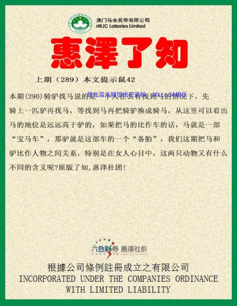 284期:塞翁失马,焉知非福,指的是塞翁丢失一匹马带回来另一匹马,解明肖马。把祸变成福,那这期我们说说另一位丢马的老汉,老汉解男肖鼠牛虎龙马猴狗。这位老汉丢失了马,去找秀才写篇寻马启示,秀才解肖虎龙猪马。秀才问老汉:“你的马什么时候丢的?”老汉说:“不是去年就是今年”,下句秀才问老汉:“你一共丢了几匹马?”老汉同样回答:“不是一一匹就是两匹”。我们这期就从老汉的回答中找出正确的答案,帮老汉找回他的马匹吧。