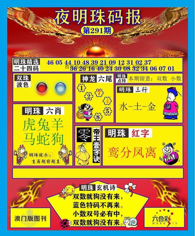 291期【五肖⑤码】已公开
